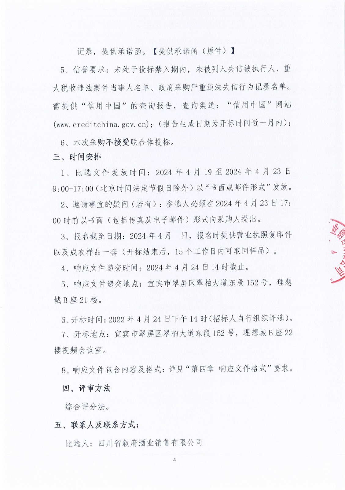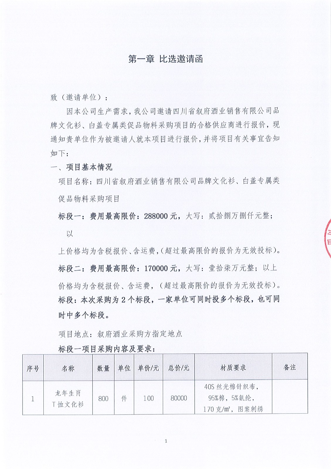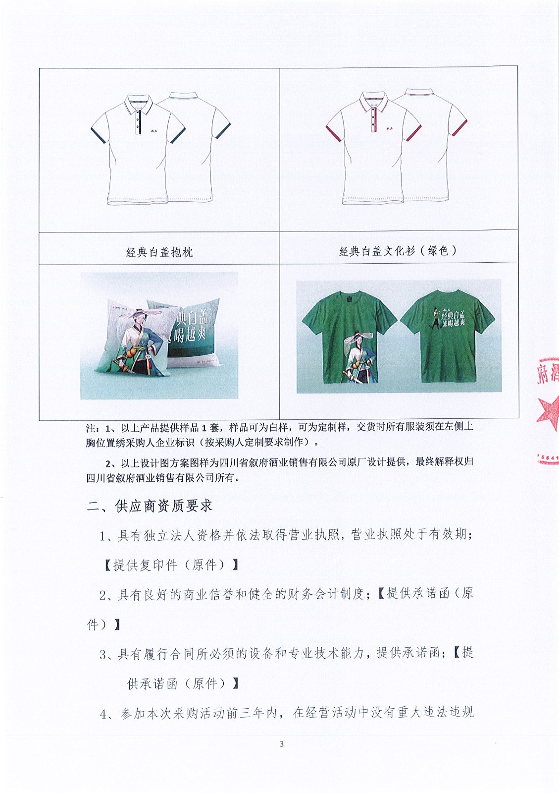 四川省敘府酒業(yè)銷售有限公司品牌文化衫、白蓋專屬類促品物料采購項目比選結果公示