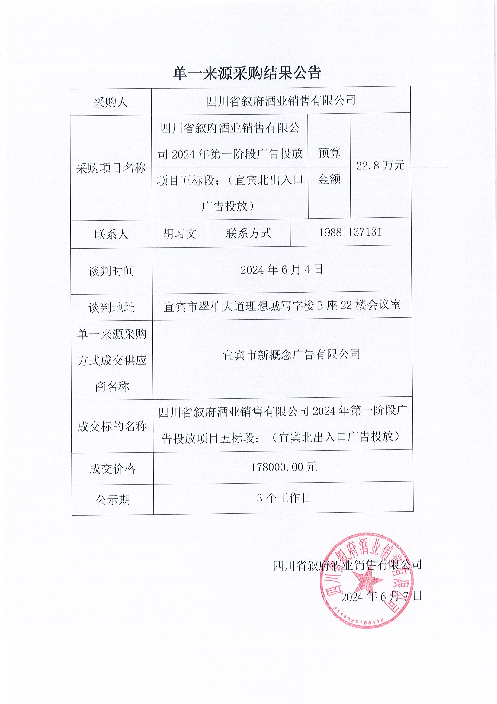 四川省敘府酒業(yè)銷售有限公司高速跨線橋/宜賓區(qū)域道閘廣告投放采購項(xiàng)目比選結(jié)果公示公告