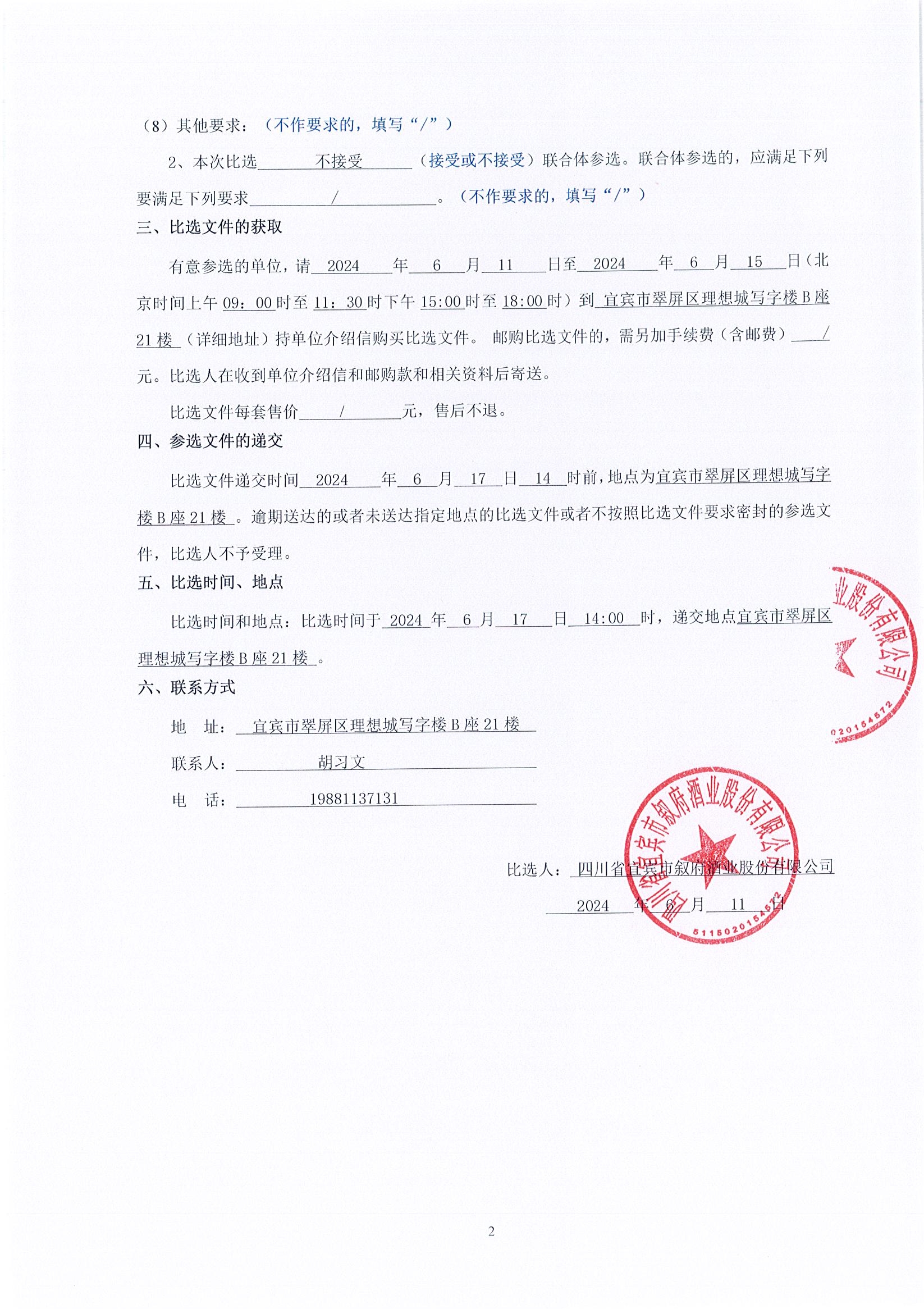 四川省敘府酒業(yè)銷售有限公司高速跨線橋/宜賓區(qū)域道閘廣告投放采購項目比選結(jié)果公示公告