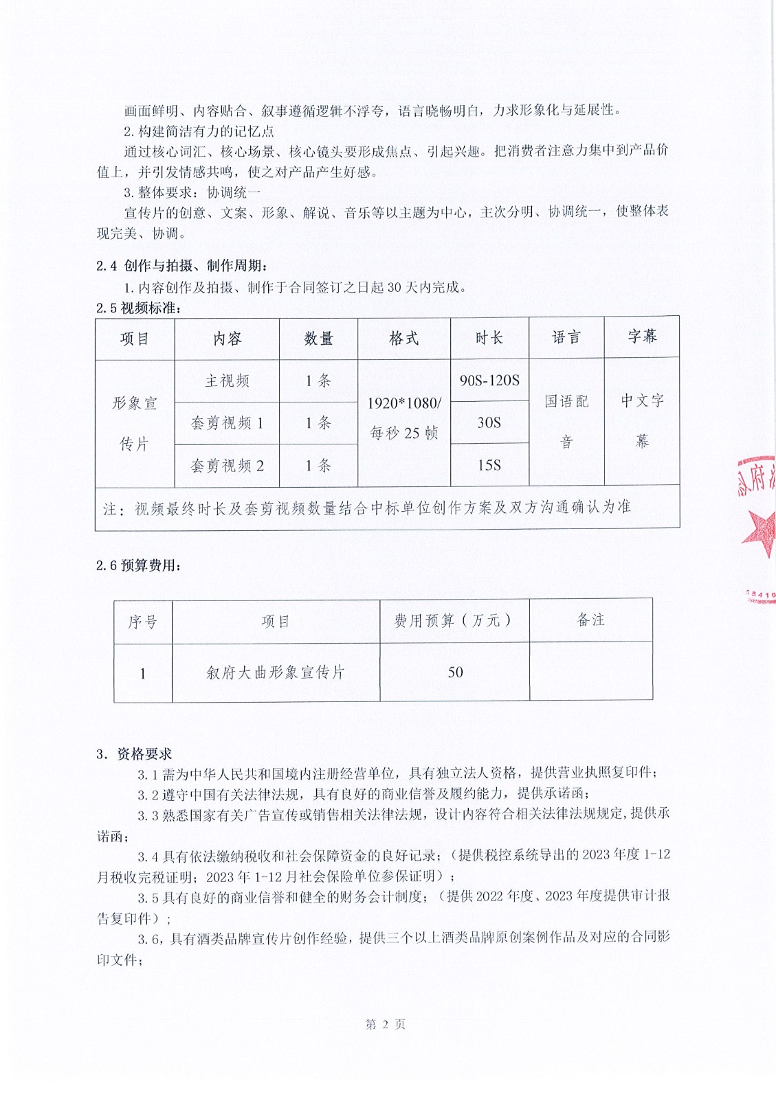 四川省敘府酒業(yè)銷售有限公司敘府大曲(藍(lán)標(biāo))產(chǎn)品TVC的創(chuàng)作與拍攝采購(gòu)項(xiàng)目中標(biāo)結(jié)果公示公告