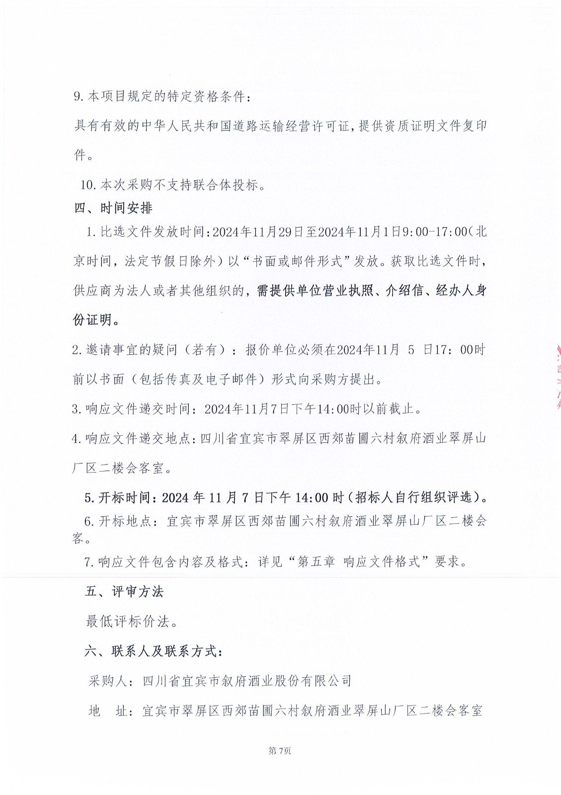 四川省宜賓市敘府酒業(yè)股份有限公司調(diào)度中心托盤采購項目比選公示公告
