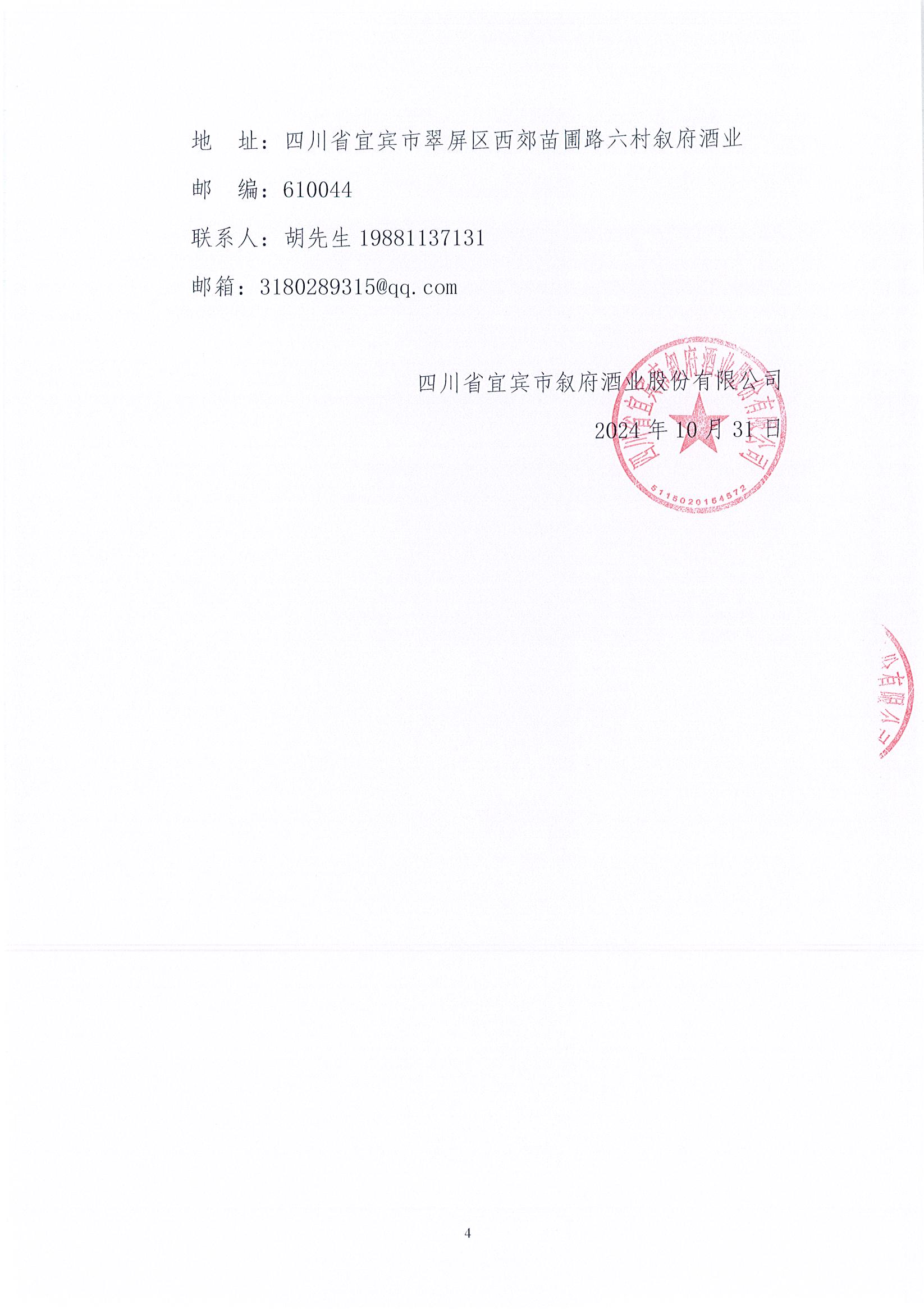 四川省宜賓市敘府酒業(yè)股份有限公司物流運(yùn)輸服務(wù)采購項(xiàng)目比選公示公告