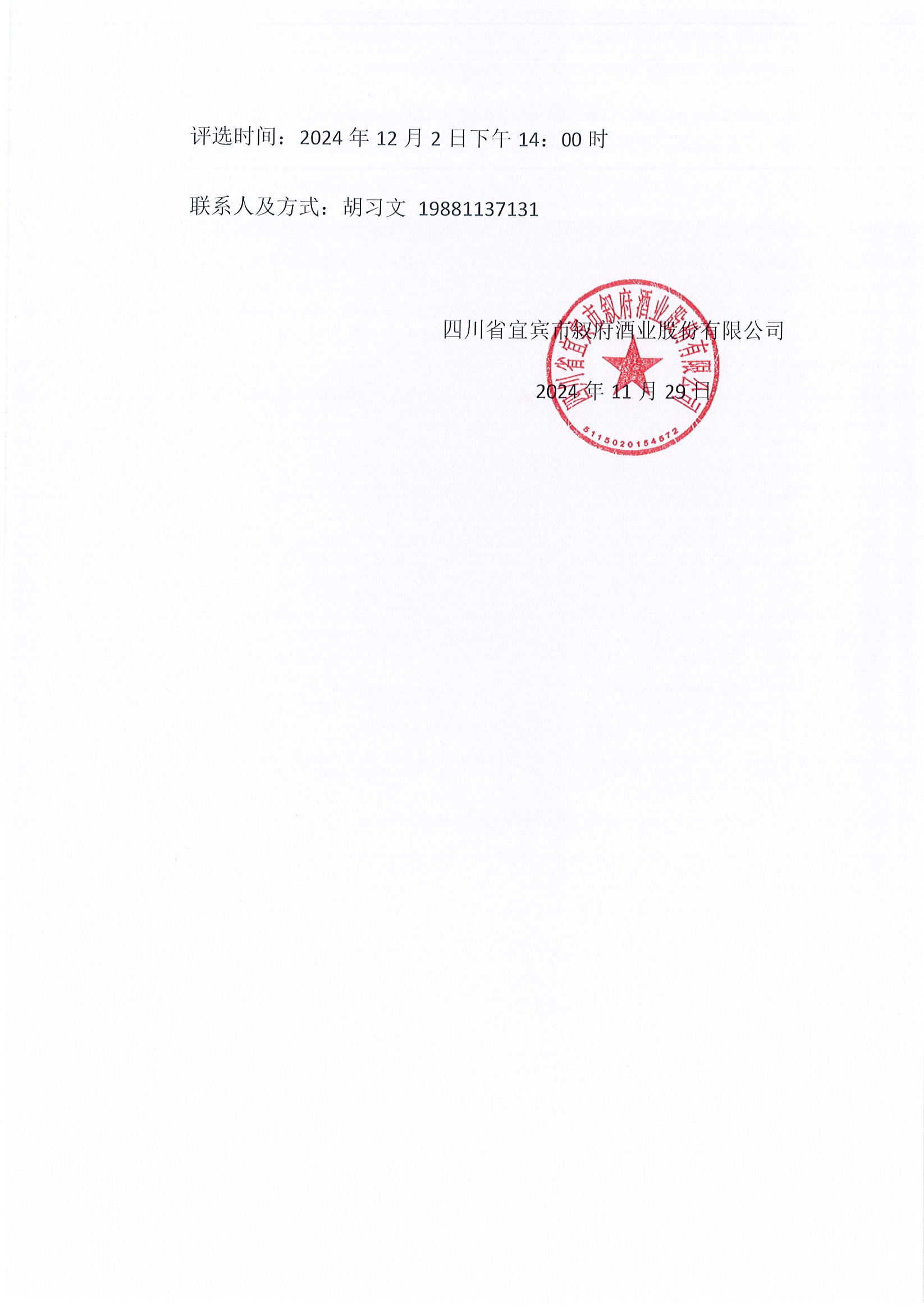 四川省宜賓市敘府酒業(yè)股份有限公司李莊廠區(qū)包裝中心酒罐區(qū)建設采購項目比選結果公示