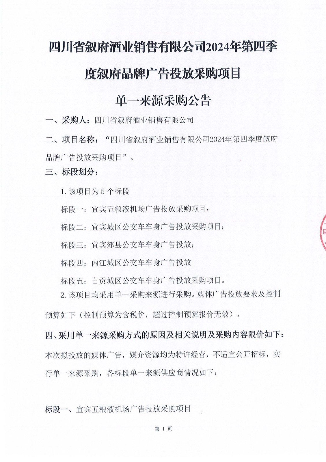 四川省敘府酒業(yè)銷售有限公司敘府大曲(藍標)產(chǎn)品TVC的創(chuàng)作與拍攝采購項目中標結(jié)果公示公告