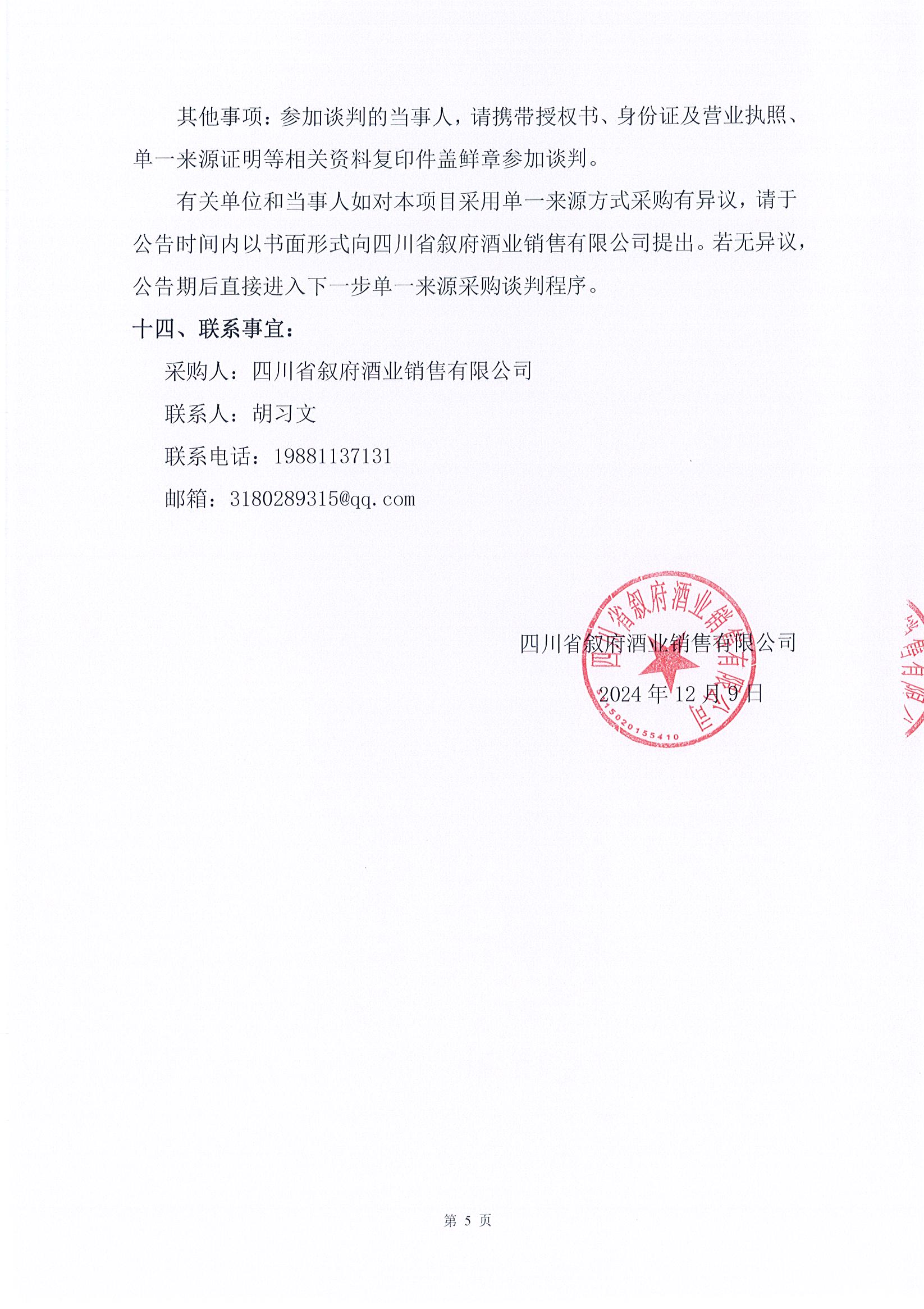 四川省宜賓市敘府酒業(yè)股份有限公司李莊廠區(qū)2024年12月-2025年12月丟糟外包出售競爭性談判項目結(jié)果公示