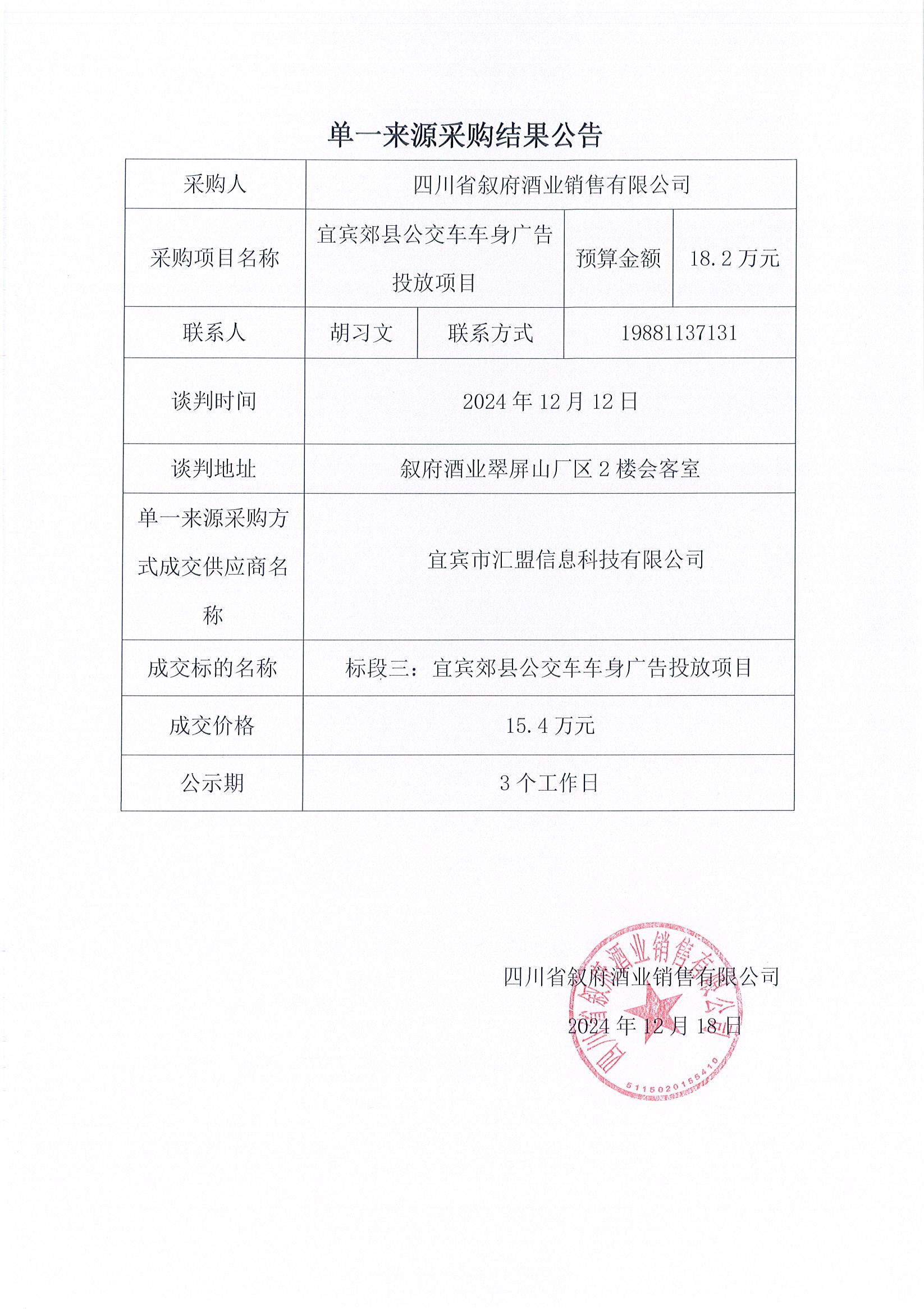 四川省敘府酒業(yè)銷售有限公司2024中國國際名酒博覽會展位設(shè)計(jì)與搭建采購項(xiàng)目比選結(jié)果公示公告