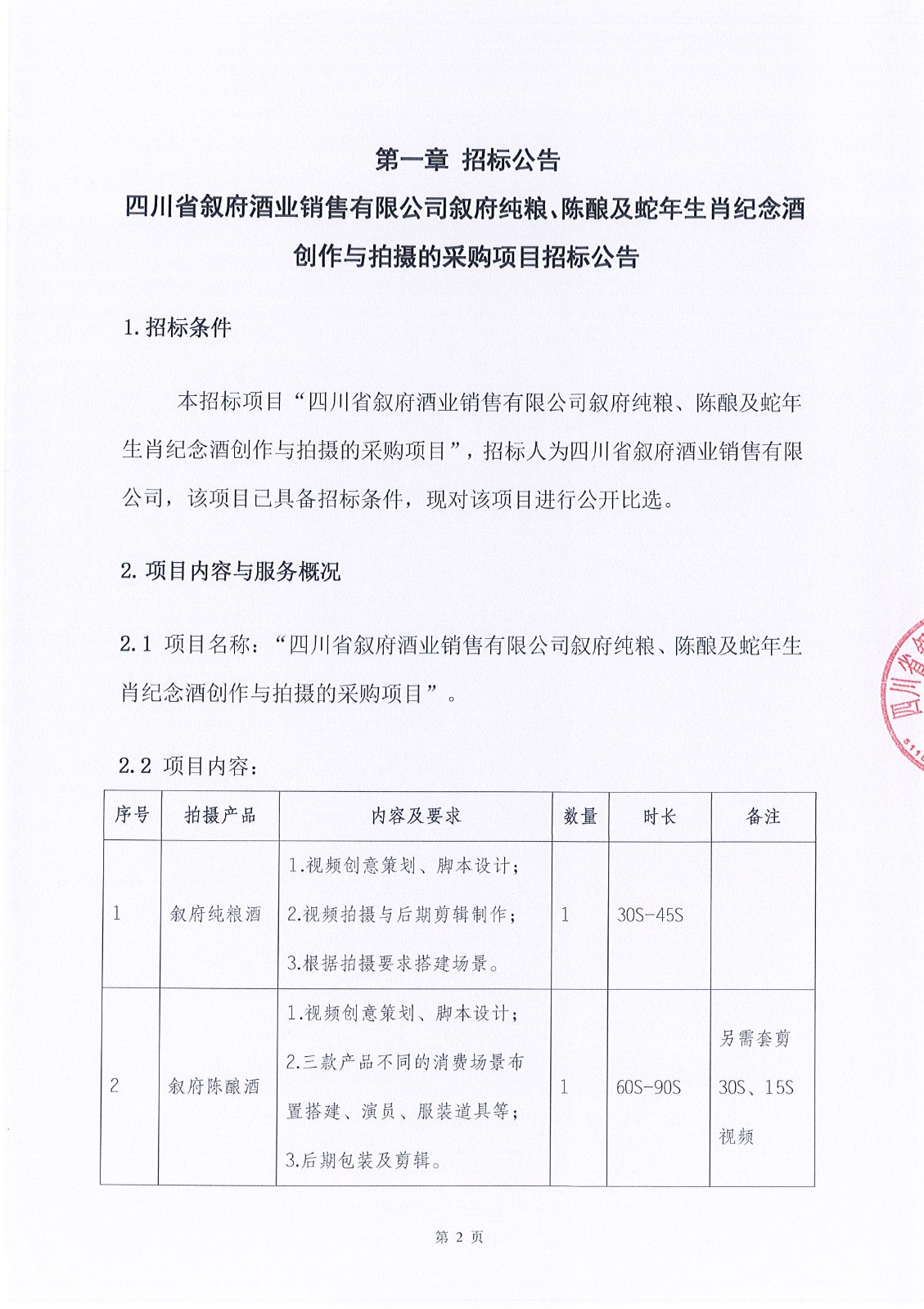 四川省敘府酒業(yè)銷售有限公司敘府大曲(藍標)產(chǎn)品TVC的創(chuàng)作與拍攝采購項目中標結(jié)果公示公告