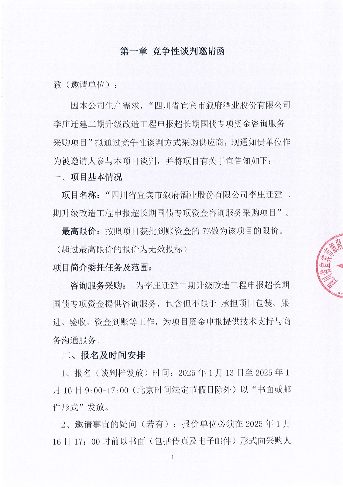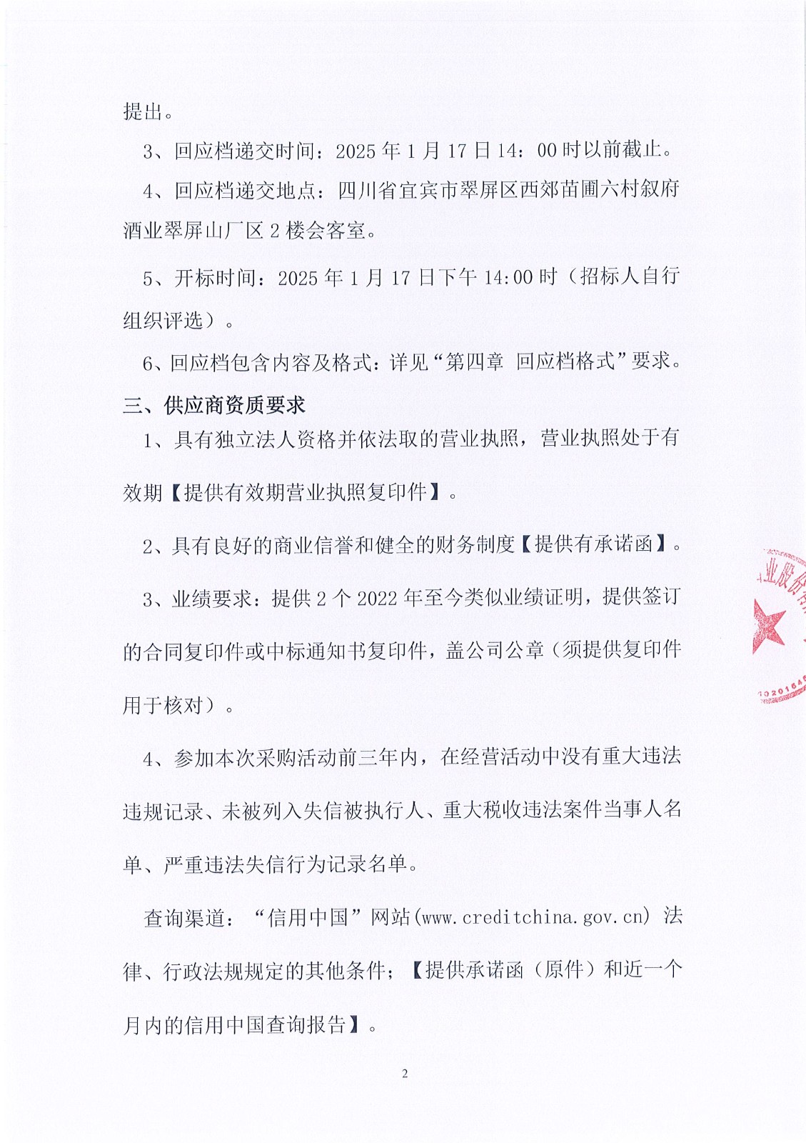 四川省敘府酒業(yè)銷售有限公司2024年四季度(藍標)敘府大曲氣模采購項目比選結果公示公告