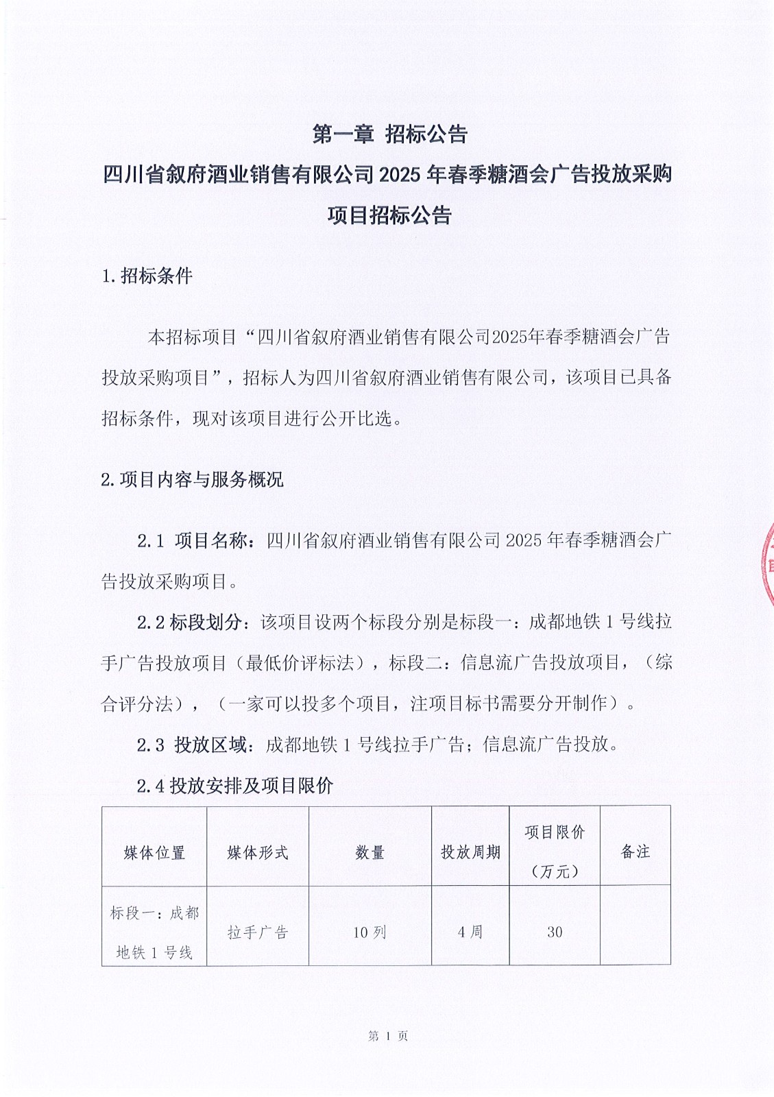 四川省敘府酒業(yè)銷售有限公司2025年度新聞媒體投放資源采購項目 單一來源采購公告