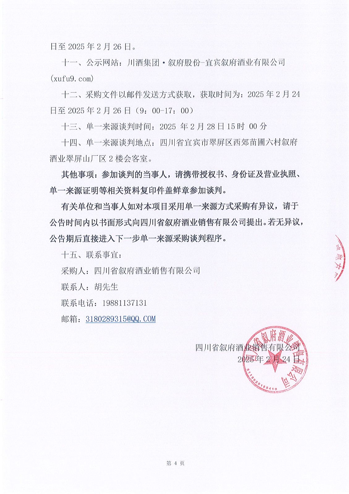 四川省敘府酒業(yè)銷售有限公司2025年度新聞媒體投放資源采購(gòu)項(xiàng)目單一來(lái)源采購(gòu)邀請(qǐng)書