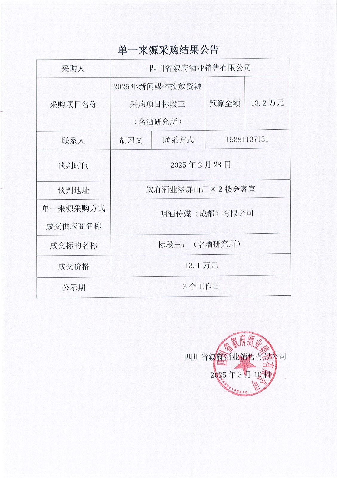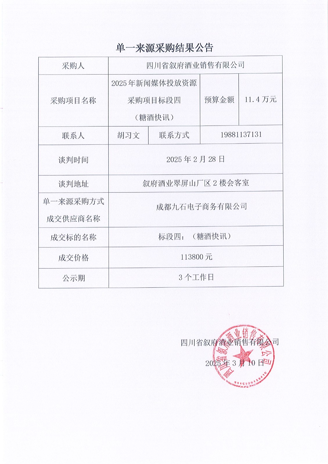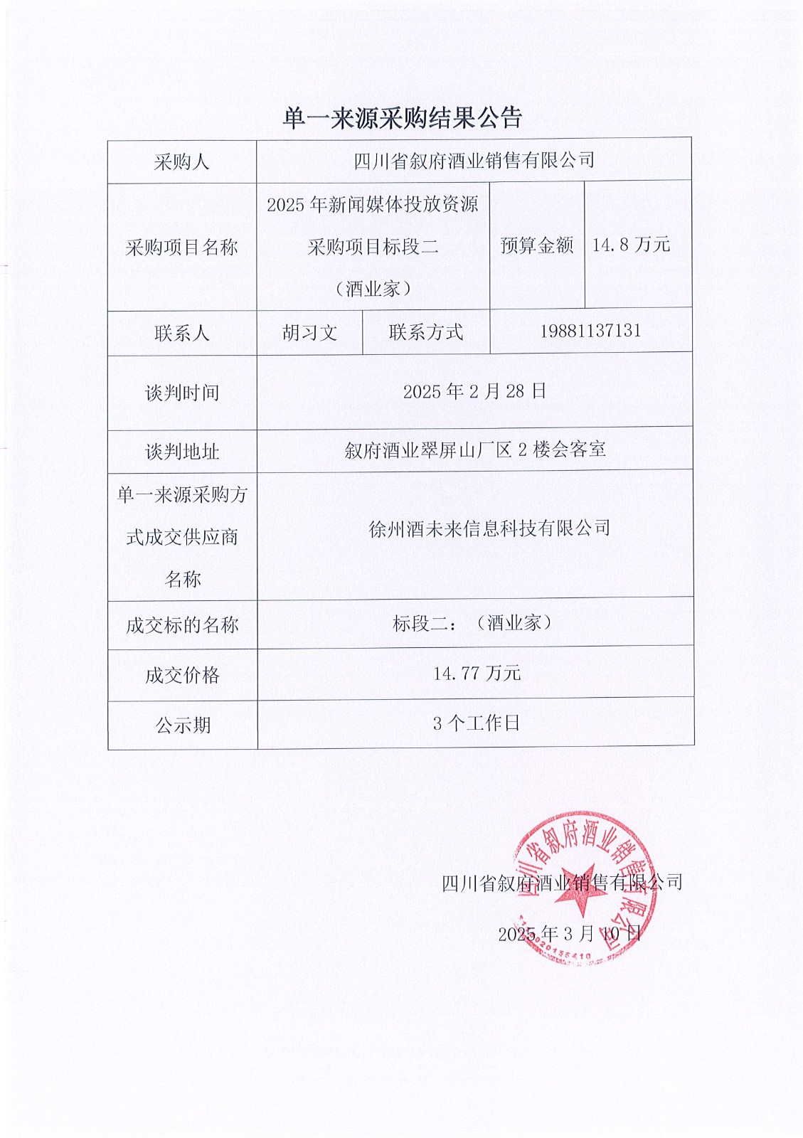 四川省敘府酒業(yè)銷售有限公司2025年春季糖酒會廣告投放采購項目流標(biāo)公示公告