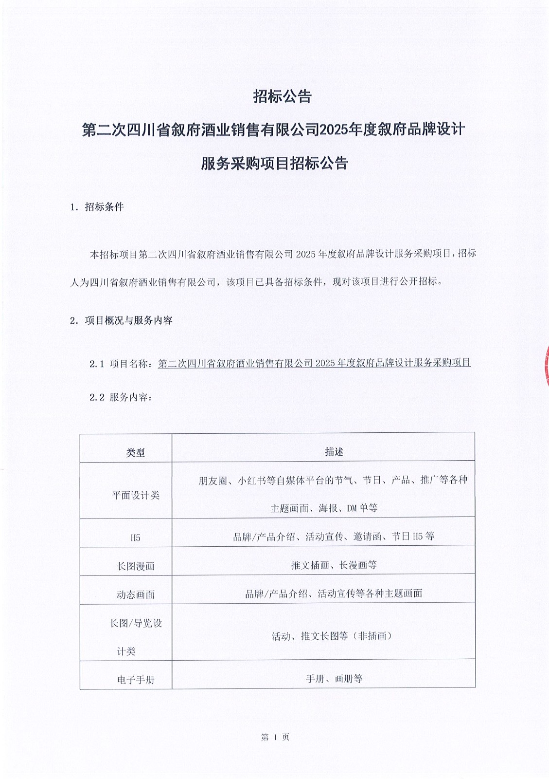第二次四川省敘府酒業(yè)銷售有限公司成都營銷中心升級改造服務(wù)采購項(xiàng)目公開比選招標(biāo)公告