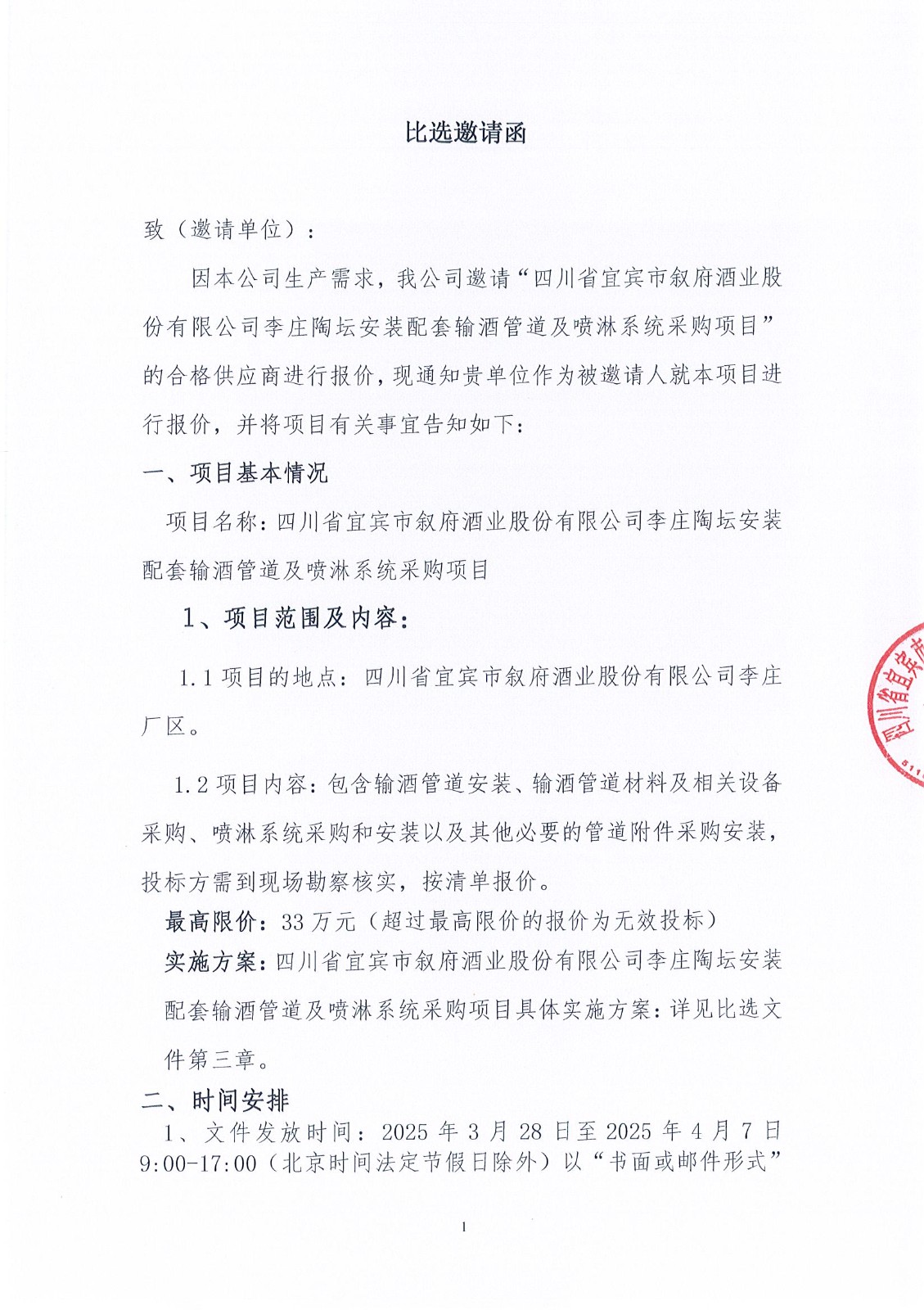 四川省宜賓市敘府酒業(yè)股份有限公司2025年度生產一線工作裝采購項目比選結果公示