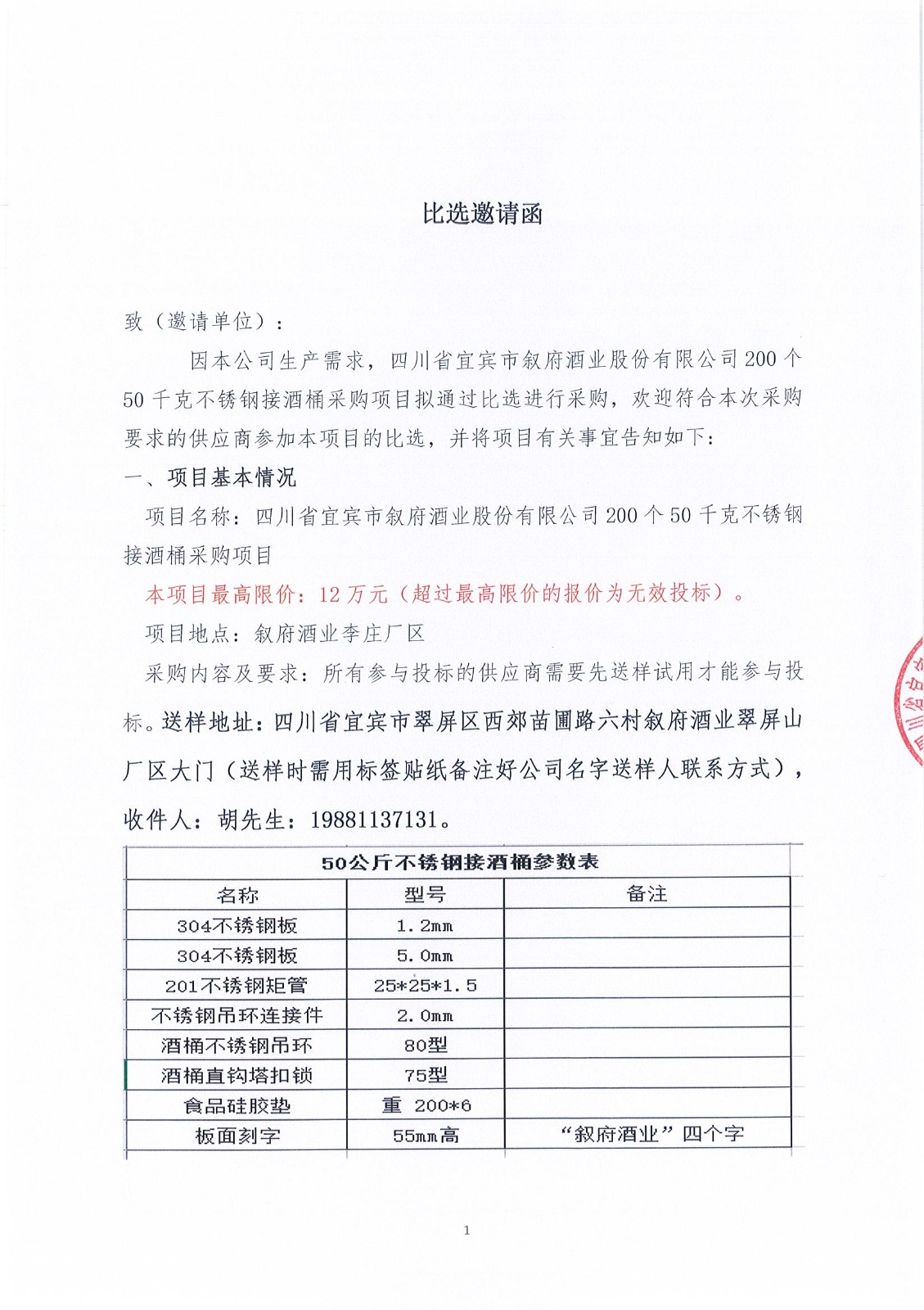 四川省宜賓市敘府酒業(yè)股份有限公司200個50千克不銹鋼接酒桶采購項目流標公示公告