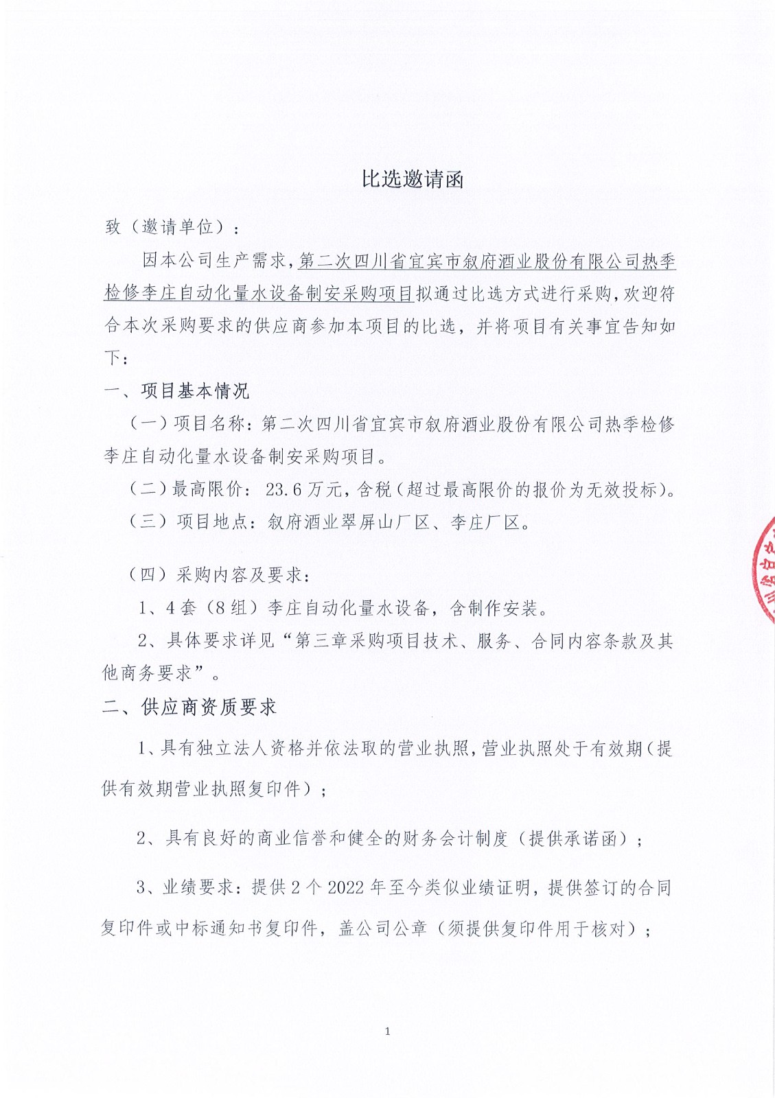 四川省敘府酒業(yè)銷售有限公司重點市場公益活動策劃執(zhí)行服務采購項目比選結(jié)果公示公告