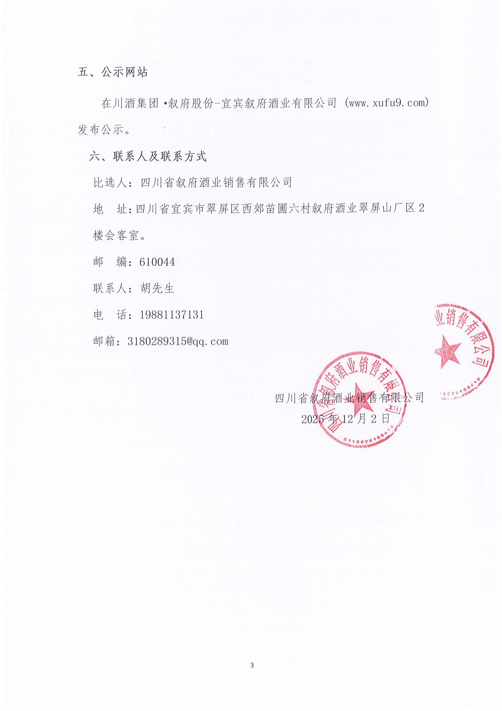 四川省敘府酒業(yè)銷售有限公司敘府大曲(藍標)產品TVC的創(chuàng)作與拍攝采購項目中標結果公示公告