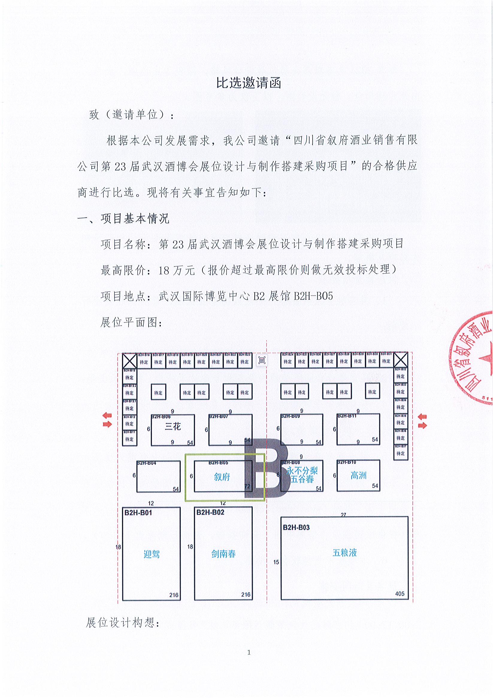 四川省敘府酒業(yè)銷售有限公司第23屆武漢酒博會展位設(shè)計與制作搭建采購項目招標比選公示公告