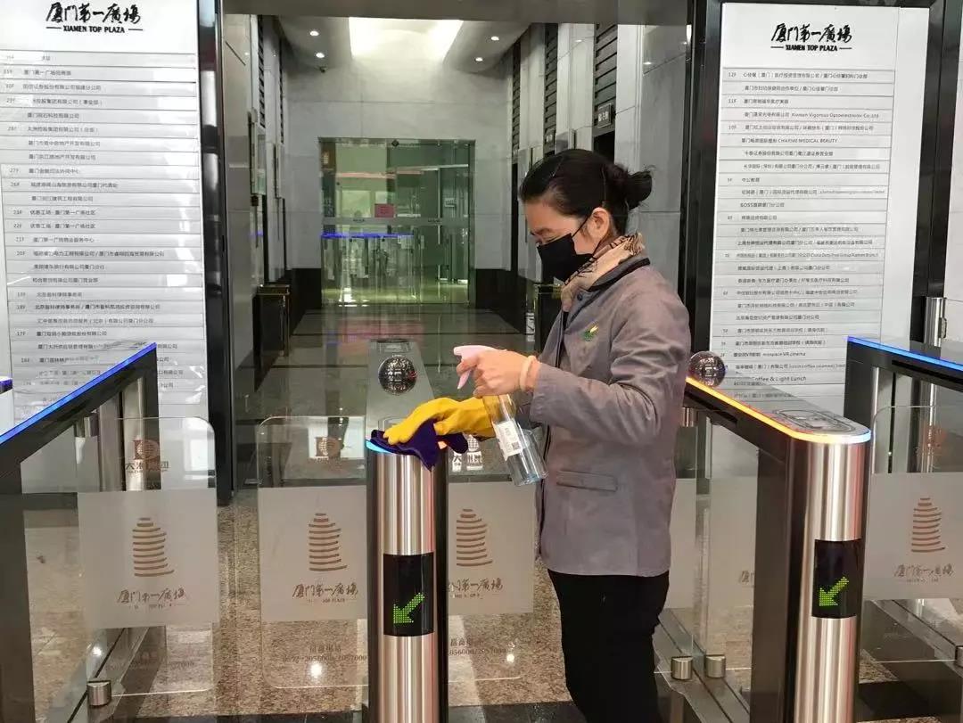 全天候24小時值崗,逐一為全體人員測量體溫,要求進出人員佩戴口罩,使用專業(yè)設備對每個角落消毒……這些已成為廈門第一廣場物業(yè)服務人員每日的例行工作。廈門第一廣場作為大洲集團旗下全海景5A甲級寫字樓,樓內有近百家企業(yè)入駐,盡管不少復工企業(yè)紛紛采取輪班制度,通勤人數(shù)依然較多,為了最大程度確保廣大業(yè)戶的安全,廈門第一廣場根據(jù)集團下達的防控指令,從內到外嚴抓疫情防控,每一處細節(jié)都不放過。在前期全面疫情阻擊基礎上,組織全體樓內業(yè)戶共同行動,共克疫情。