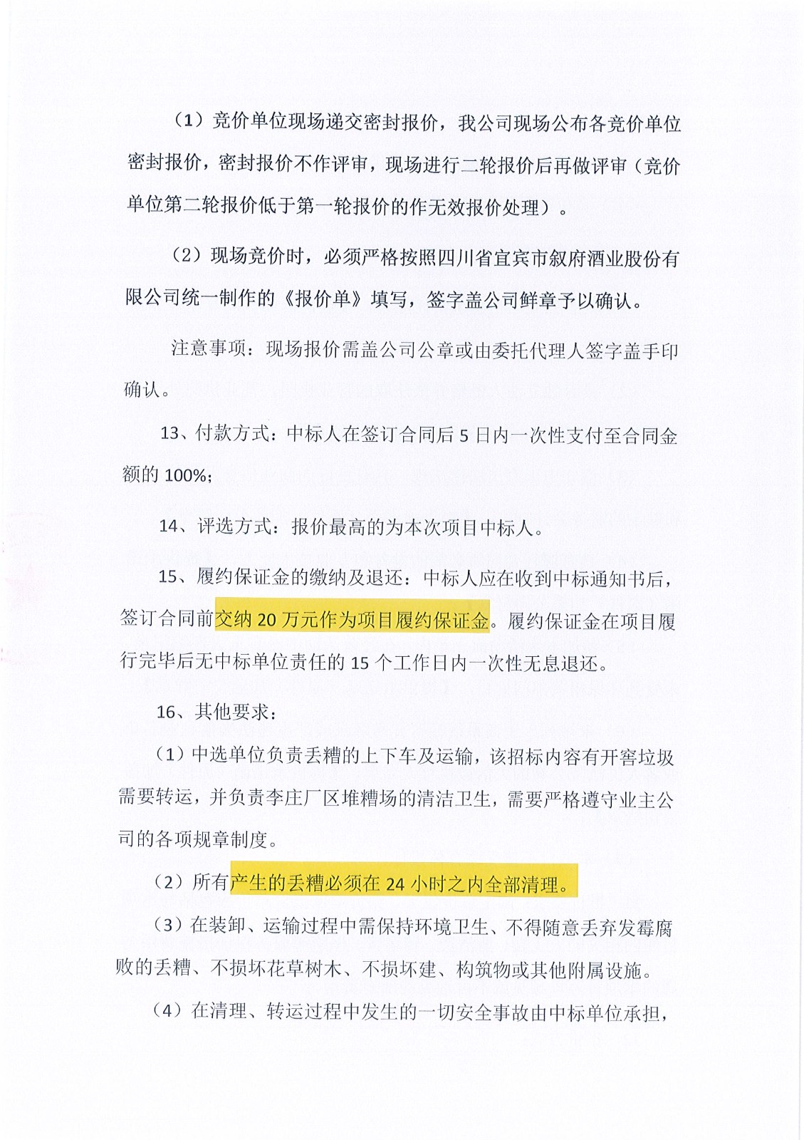 四川省宜賓市敘府酒業(yè)股份有限公司李莊廠區(qū)2025-2026年度丟糟出售項(xiàng)目競(jìng)價(jià)結(jié)果公示公告