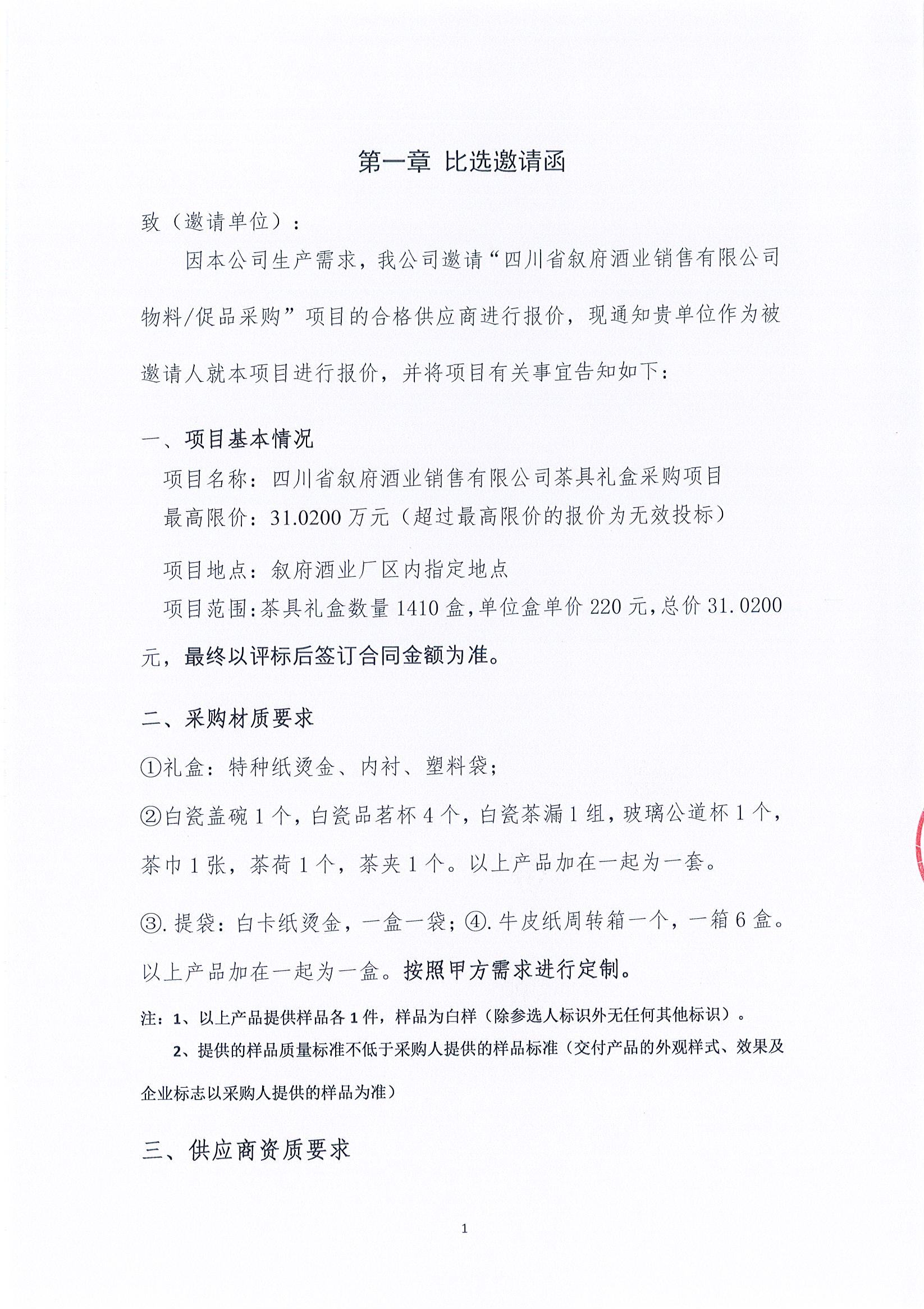四川省敘府酒業(yè)銷售有限公司茶具禮盒采購項(xiàng)目