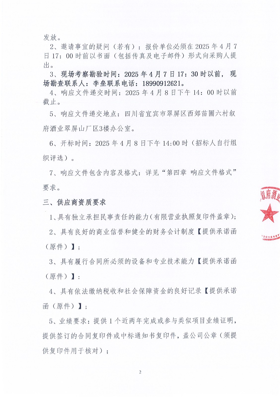 四川省宜賓市敘府酒業(yè)股份有限公司2025年度生產(chǎn)一線工作裝采購項目比選結果公示