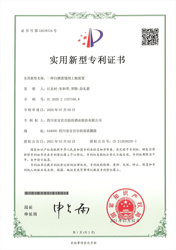 成功創(chuàng)建四川省企業(yè)技術(shù)中心以及宜賓市釀酒微生物研究工程技術(shù)中心,目前已擁有國(guó)家專利33個(gè)科技成果和專利轉(zhuǎn)化率達(dá)100%