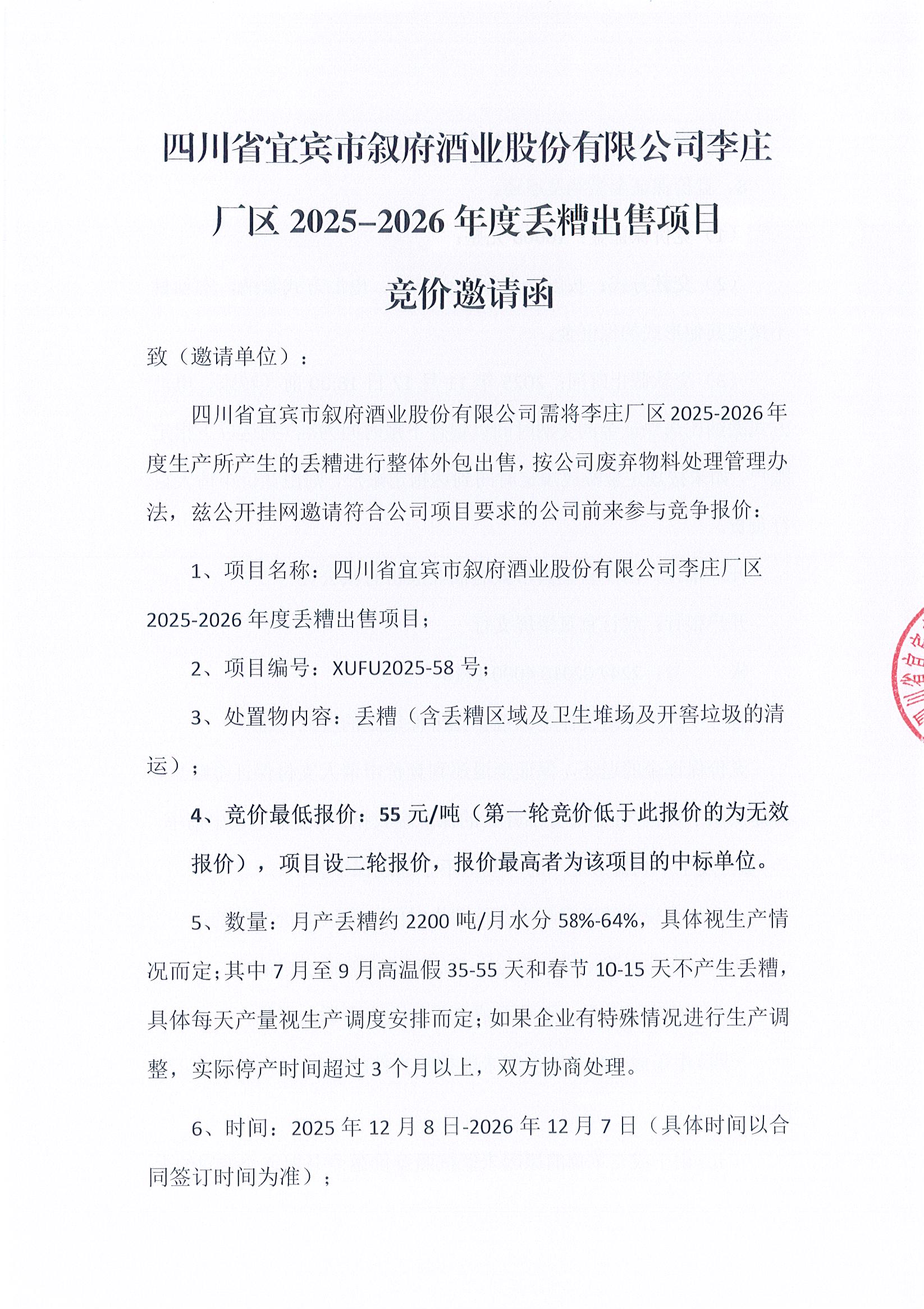 四川省宜賓市敘府酒業(yè)股份有限公司草簾采購項目比選結(jié)果公示