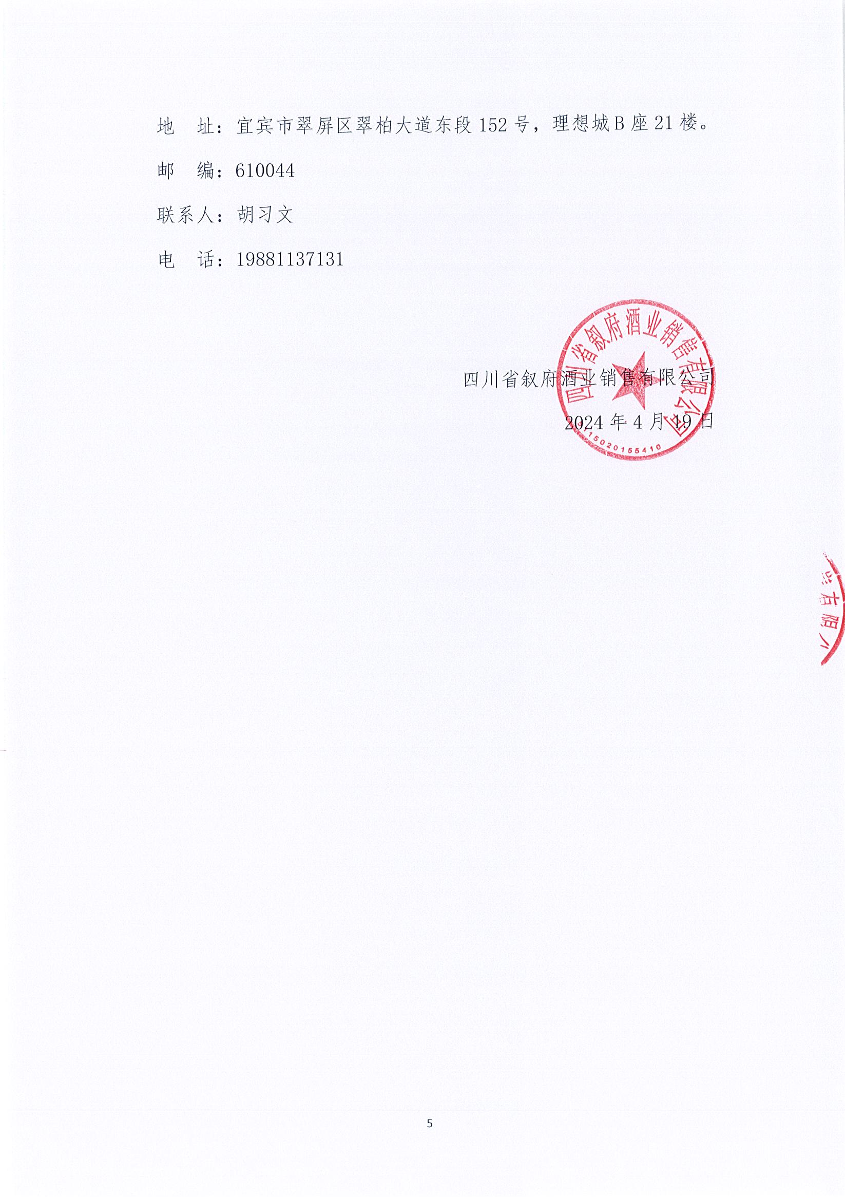 四川省敘府酒業(yè)銷售有限公司品牌文化衫、白蓋專屬類促品物料采購項目比選結(jié)果公示