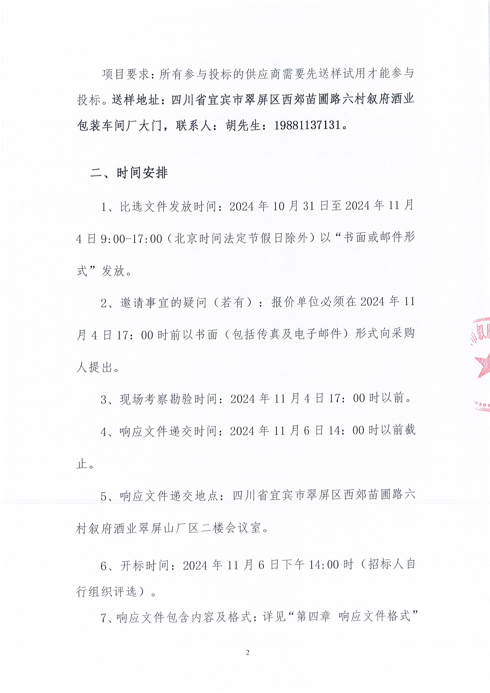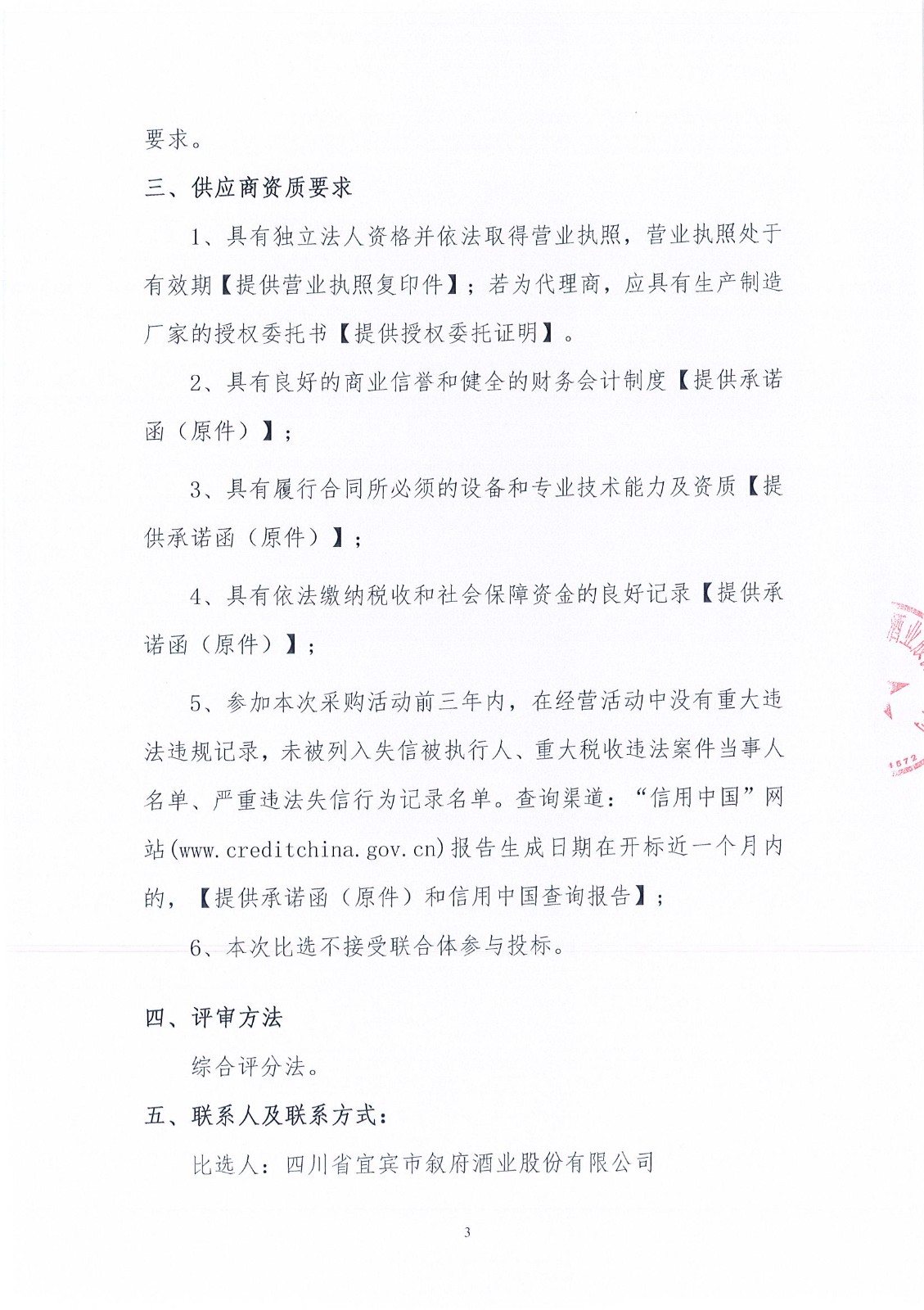 四川省宜賓市敘府酒業(yè)股份有限公司物流運(yùn)輸服務(wù)采購項(xiàng)目比選公示公告