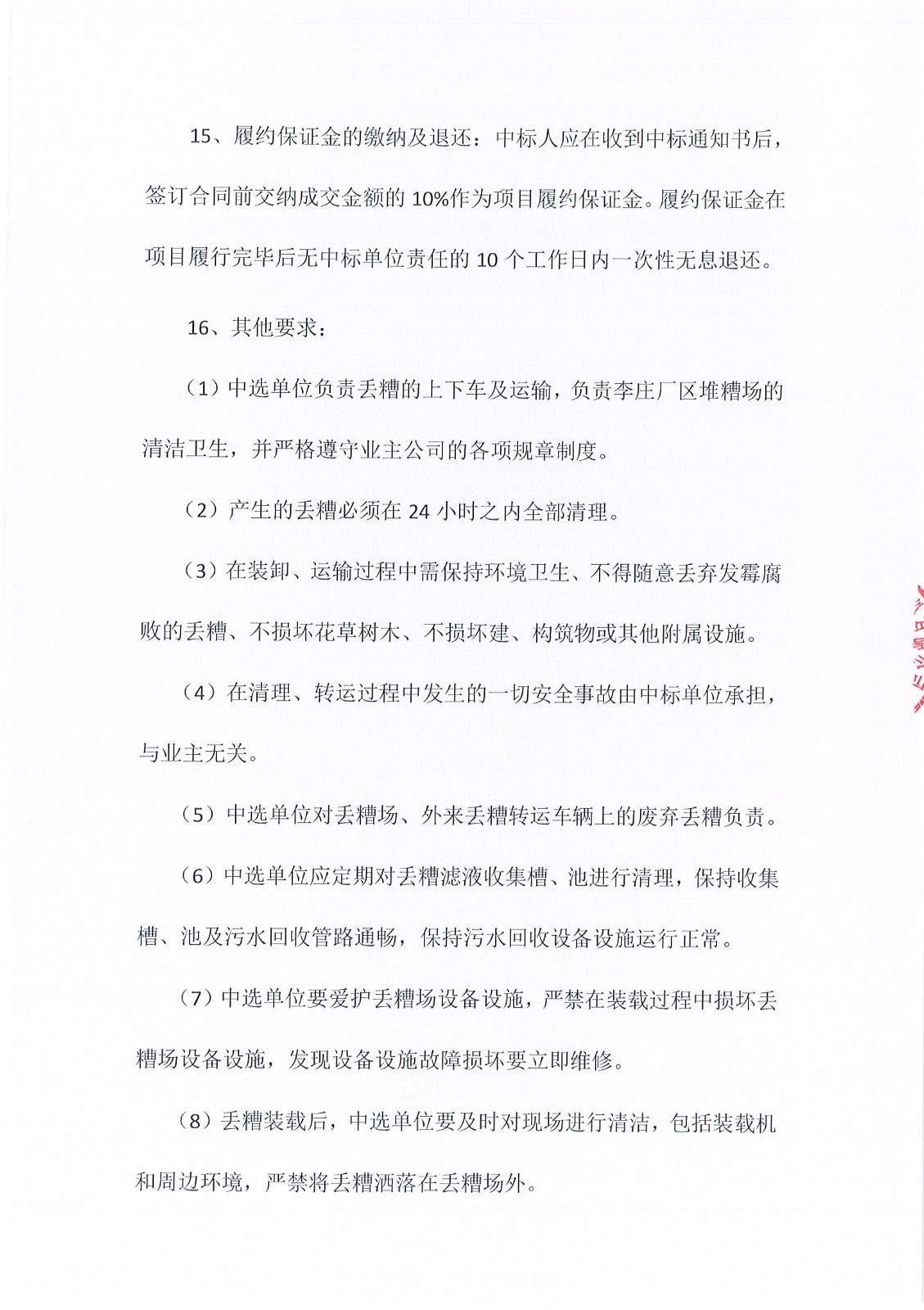 (第二次)四川省宜賓市敘府酒業(yè)股份有限公司李莊廠區(qū)2024年12月-2025年12月丟糟外包處置 項目競價公告