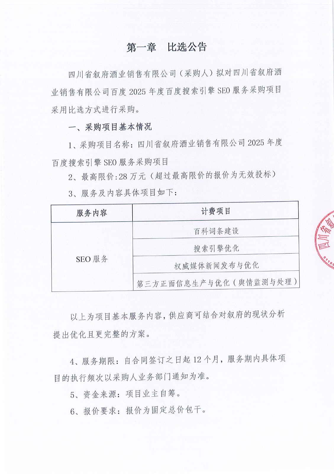 四川省敘府酒業(yè)銷售有限公司敘府純糧、陳釀及蛇年生肖紀(jì)念酒創(chuàng)作與拍攝的采購項(xiàng)目比選公示公告