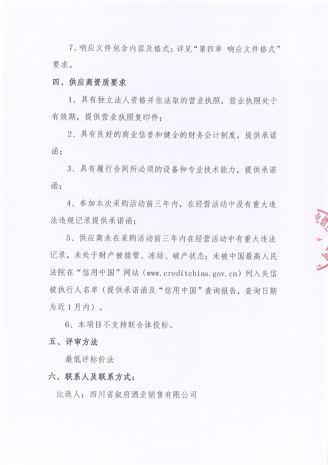 四川省敘府酒業(yè)銷售有限公司2024年四季度(藍(lán)標(biāo))敘府大曲氣模采購項(xiàng)目比選公告