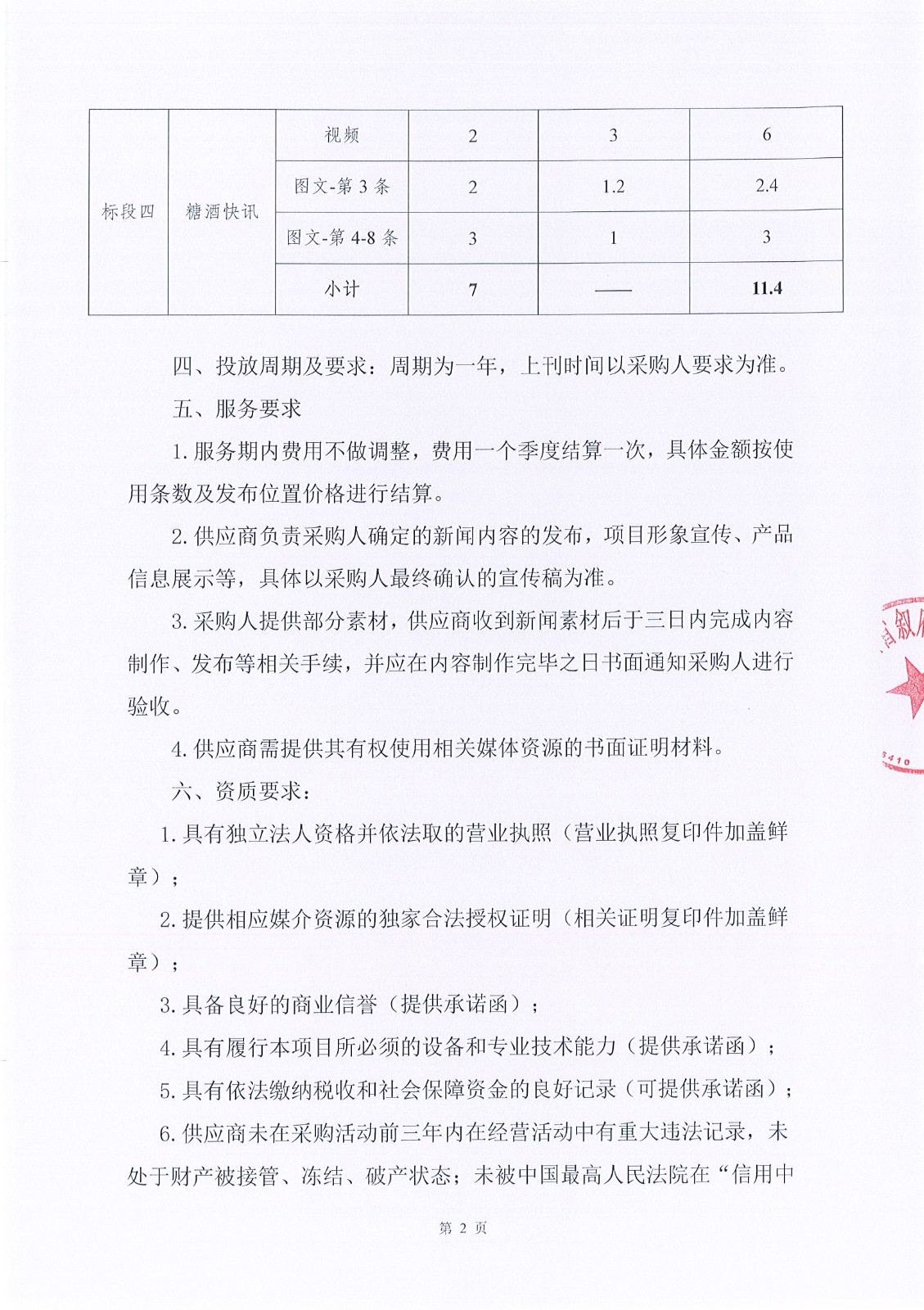 四川省敘府酒業(yè)銷售有限公司2025年度新聞媒體投放資源采購項目單一來源采購邀請書