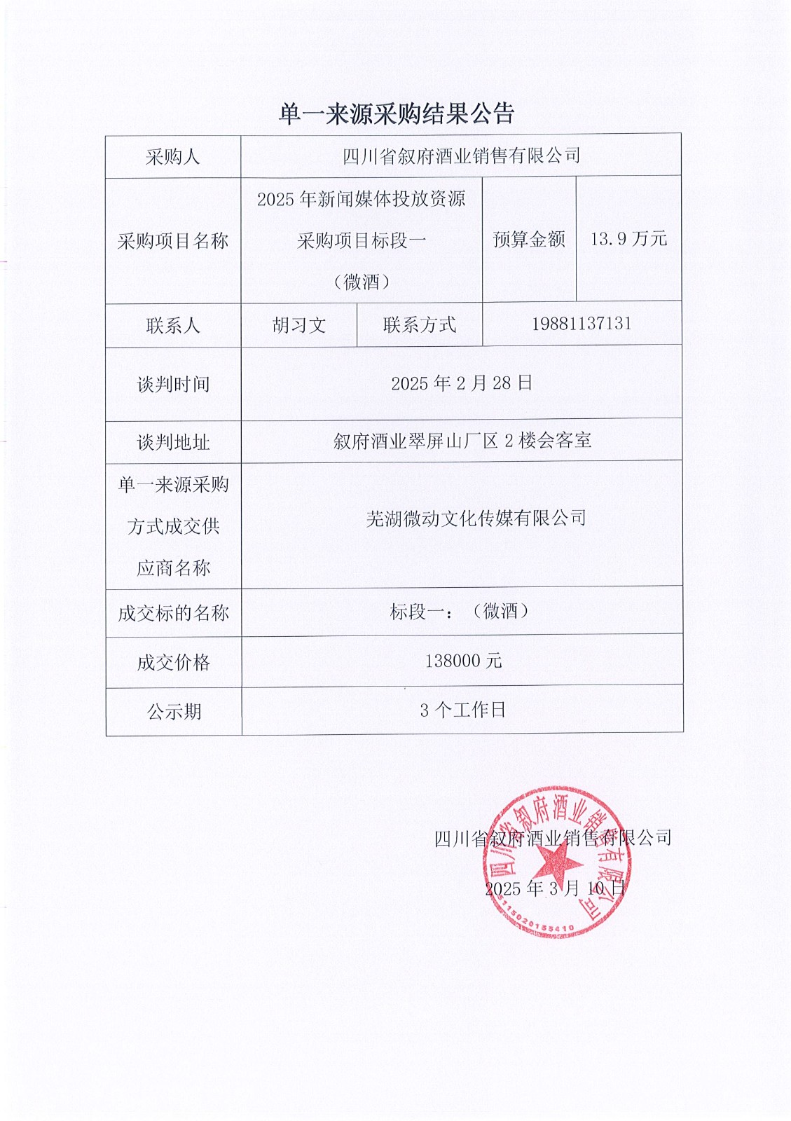 四川省敘府酒業(yè)銷售有限公司2025年春季糖酒會廣告投放采購項目流標(biāo)公示公告