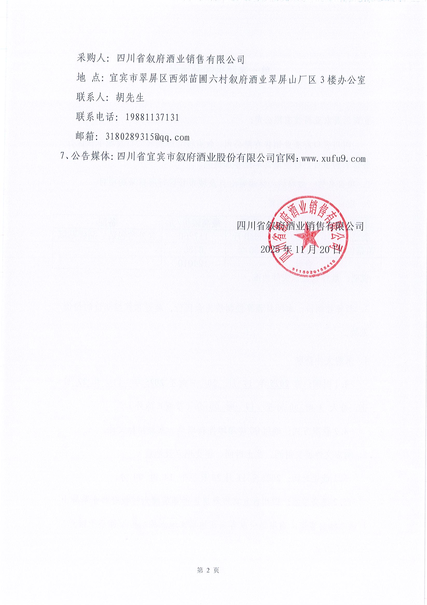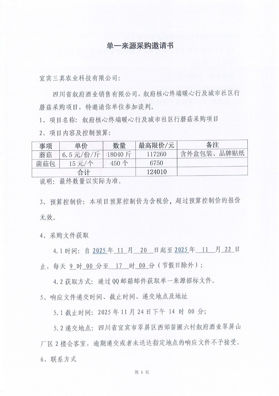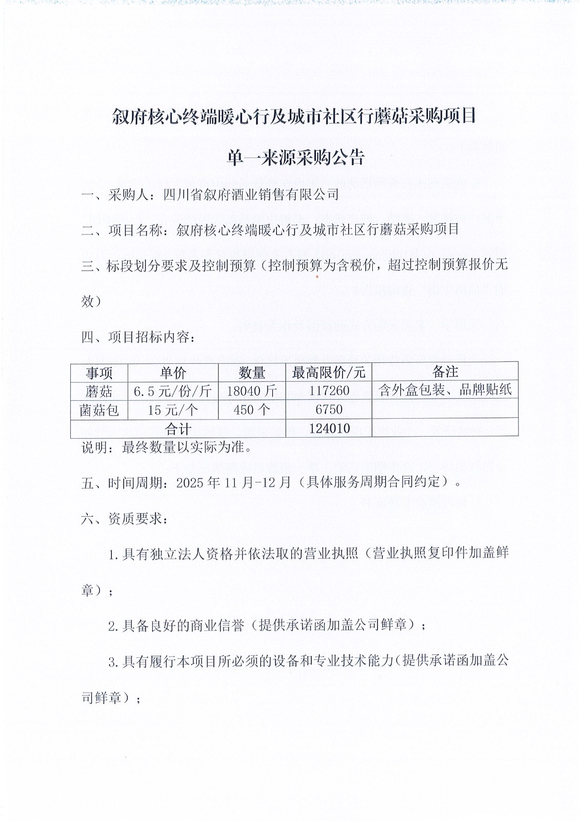 四川省敘府酒業(yè)銷售有限公司敘府核心終端暖心行及城市社區(qū)行、蘑菇單一來源采購項(xiàng)目中標(biāo)結(jié)果公示公告