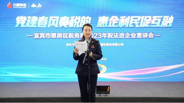 2月24日,翠屏區(qū)稅務(wù)局“2023年稅法進(jìn)企業(yè)宣講會”來到敘府酒業(yè),在理想城辦公區(qū)會議室舉辦了一場以“黨建春風(fēng)奏稅韻,惠企利民促互融”為主題的稅法宣講活動。區(qū)稅務(wù)局黨委委員、副局長賀秋,區(qū)稅務(wù)局第二分局副分局長張榮等蒞臨活動現(xiàn)場,向川酒集團(tuán)財務(wù)板塊及相關(guān)部門員工宣講稅法知識,贈送財稅法規(guī)和政策類書籍。