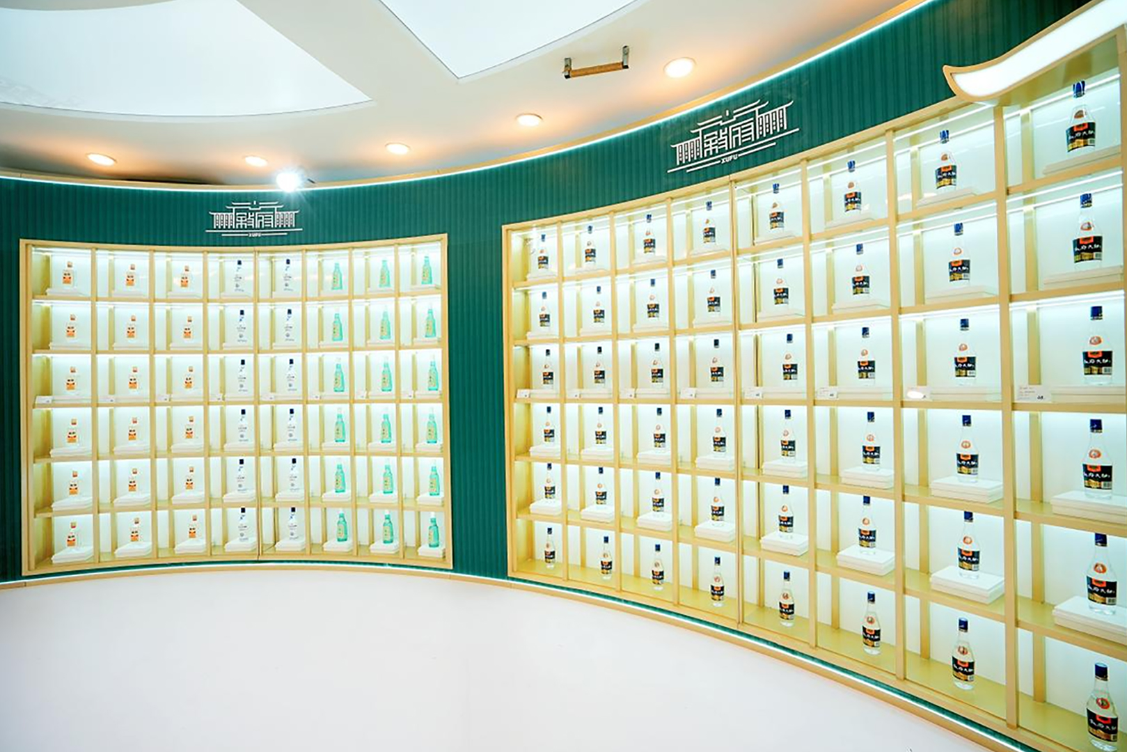 在展陳設(shè)計(jì)上,敘府延續(xù)“敘府綠”的品牌色調(diào),以充滿生機(jī)的色調(diào)對(duì)主題和氛圍進(jìn)行營造;圓形的獨(dú)立建筑空間寓意“圓滿”,以“小篆”府邸造型進(jìn)行設(shè)計(jì)延伸,讓展館的整體人文風(fēng)格與敘府的源流—“昭敘恒”酒坊形成時(shí)空互動(dòng)。將敘府“綠色生態(tài)”的堅(jiān)守與“地道濃香”的底蘊(yùn)展露無疑。